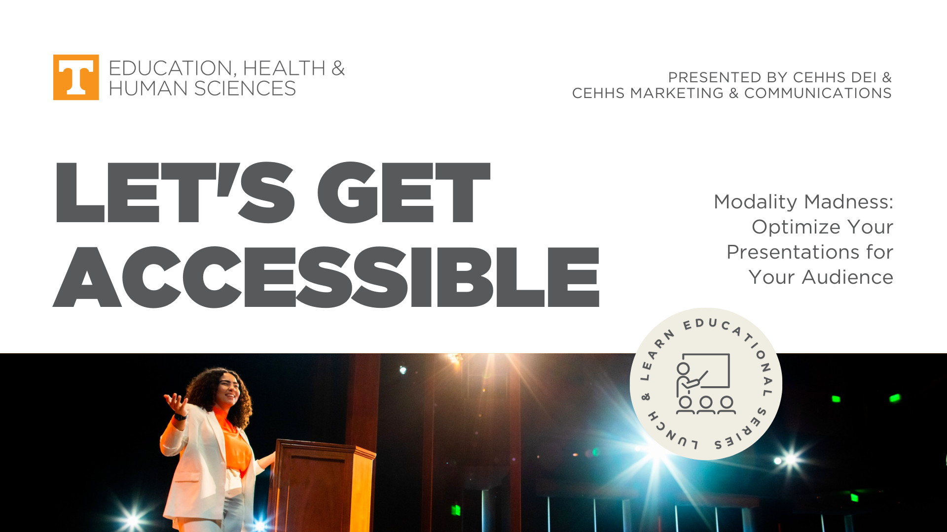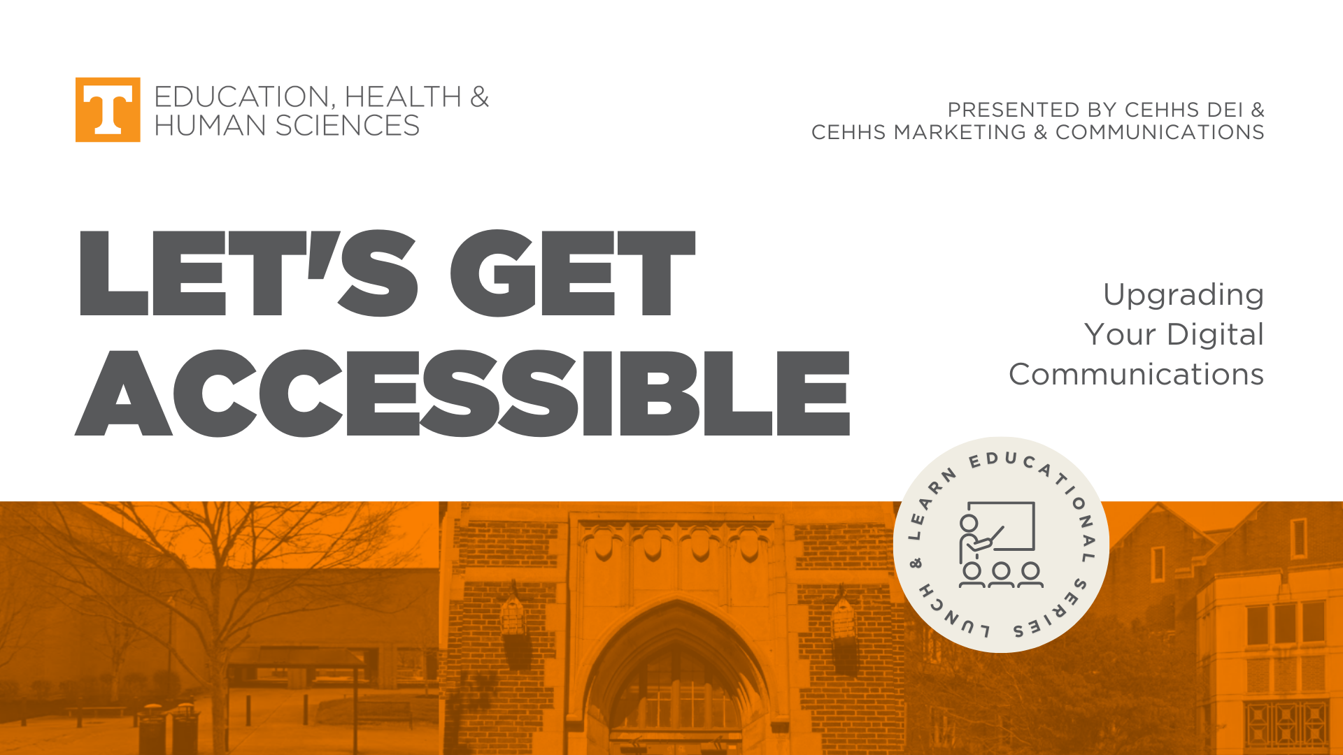 As Creative Content Manager, I regularly create presentations for the dean of the College of Education, Health, and Human Sciences. I also have created presentations for CommuniCon (the university’s annual communicators conference), CEHHS faculty and staff trainings, as well as lessons for my guest lectures in the Haslam College of Business. These presentations were made in PowerPoint and Canva.